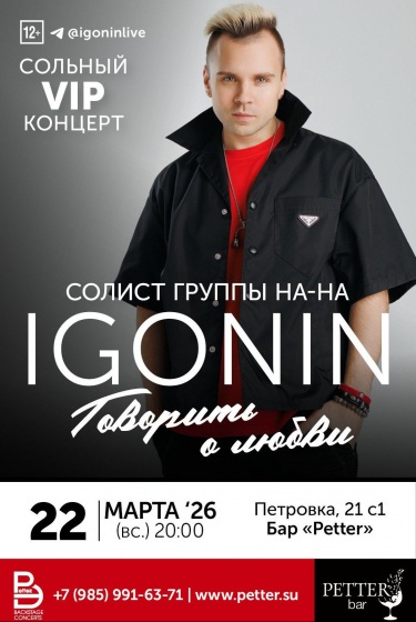 22 - МОСКВА, IGONIN, бар "PETTER" 20:00